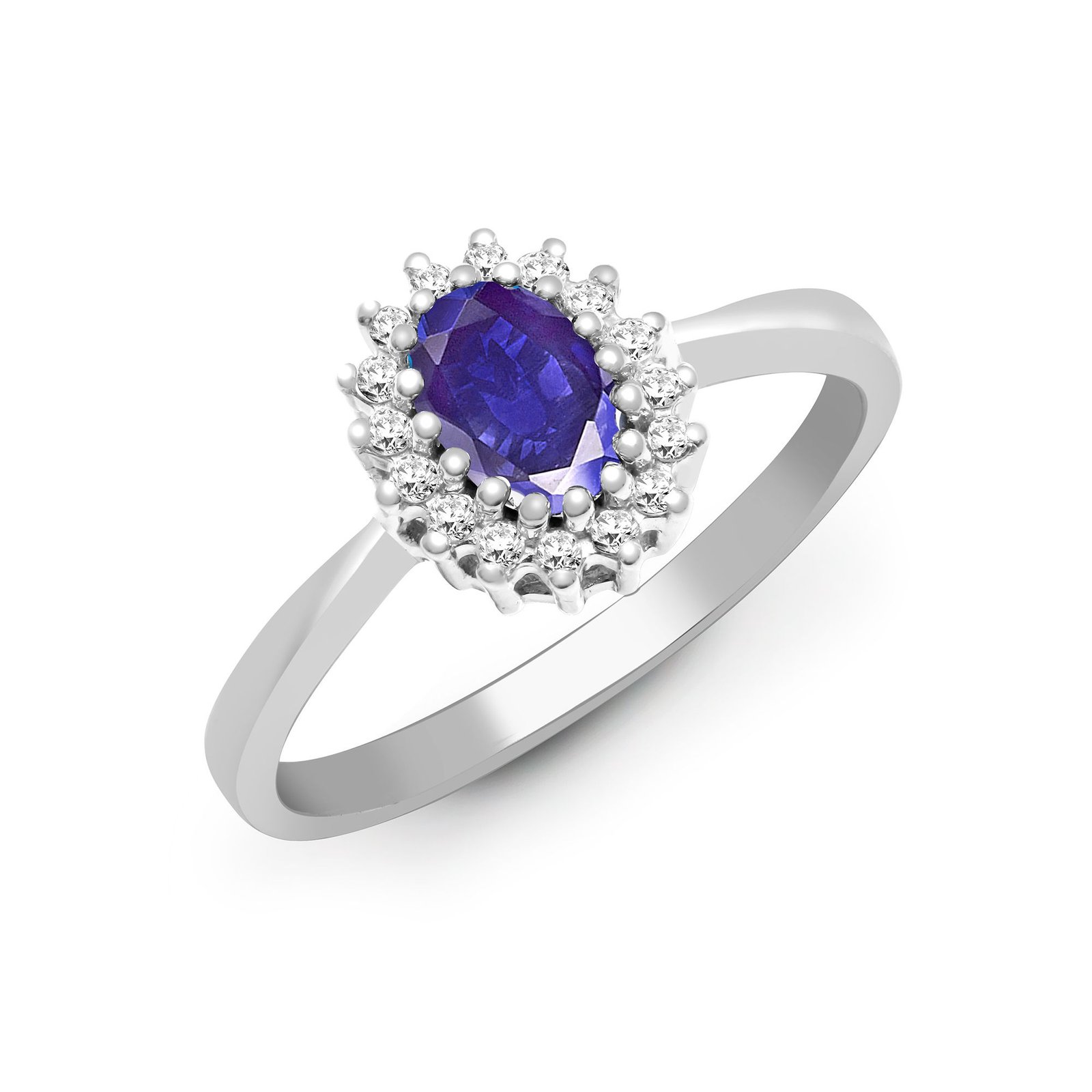 9ct White Gold Natural Diamond 12pts & Tanzanite 55pts Ring