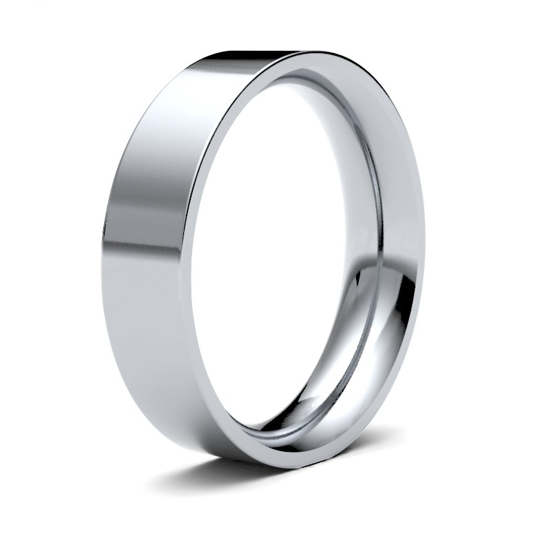 Bespoke hand-made 9ct White Gold 5mm premium weight Flat Court wedding / commitment ring. Features a brilliant hand-polished mirror-like finish. Each Bespoke jewellery item is unique and made to order, and therefore will be despatched within 2 weeks. Please note that bespoke, personalised and engraved items cannot be returned.