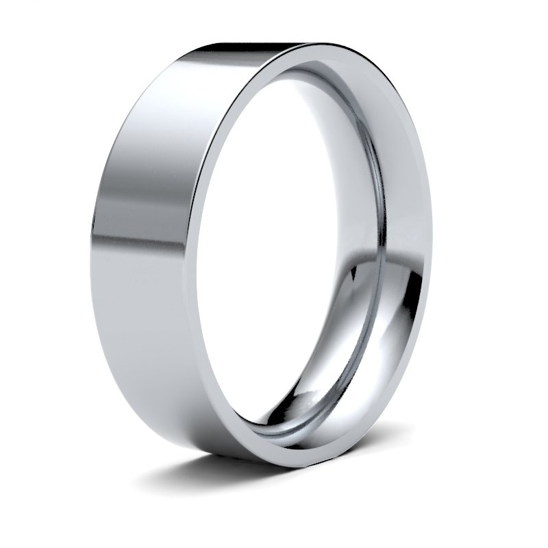 Bespoke hand-made 9ct White Gold 6mm premium weight Flat Court wedding / commitment ring. Features a brilliant hand-polished mirror-like finish. Each Bespoke jewellery item is unique and made to order, and therefore will be despatched within 2 weeks. Please note that bespoke, personalised and engraved items cannot be returned.