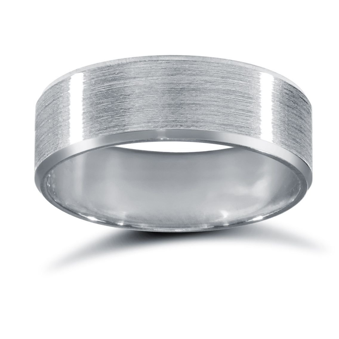 9ct White Gold Standard Weight Flat Profile Satin and Bevelled Edge Wedding Ring