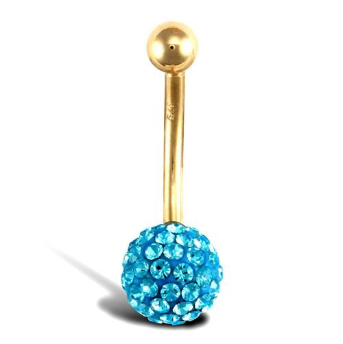 9ct yellow gold belly bar with a crystal-set end bead – baby blue.