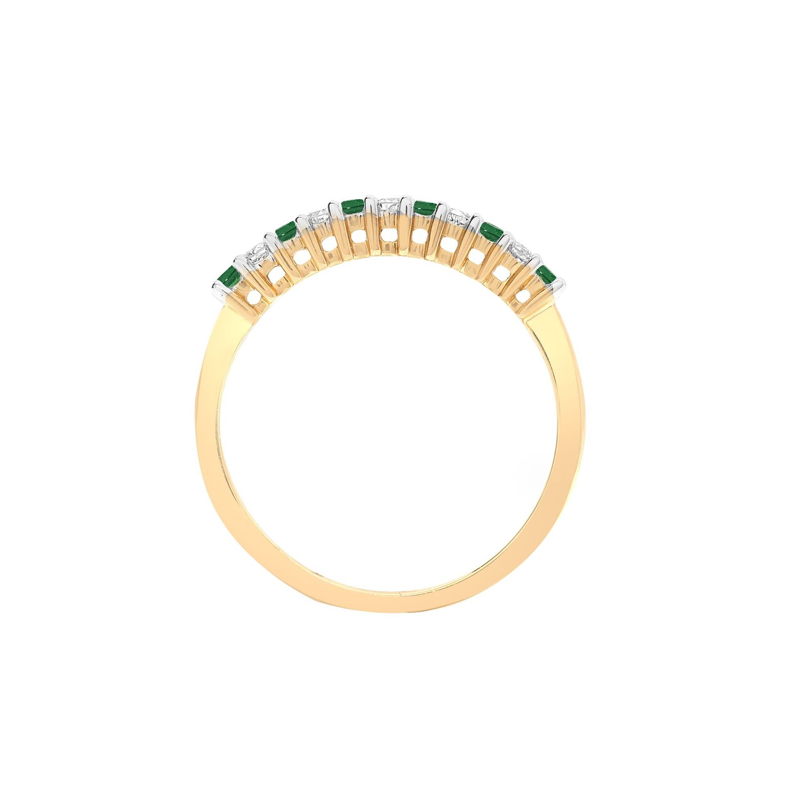 9ct Yellow Gold Natural Diamond 10pts & Emerald 15pts Half Eternity Ring