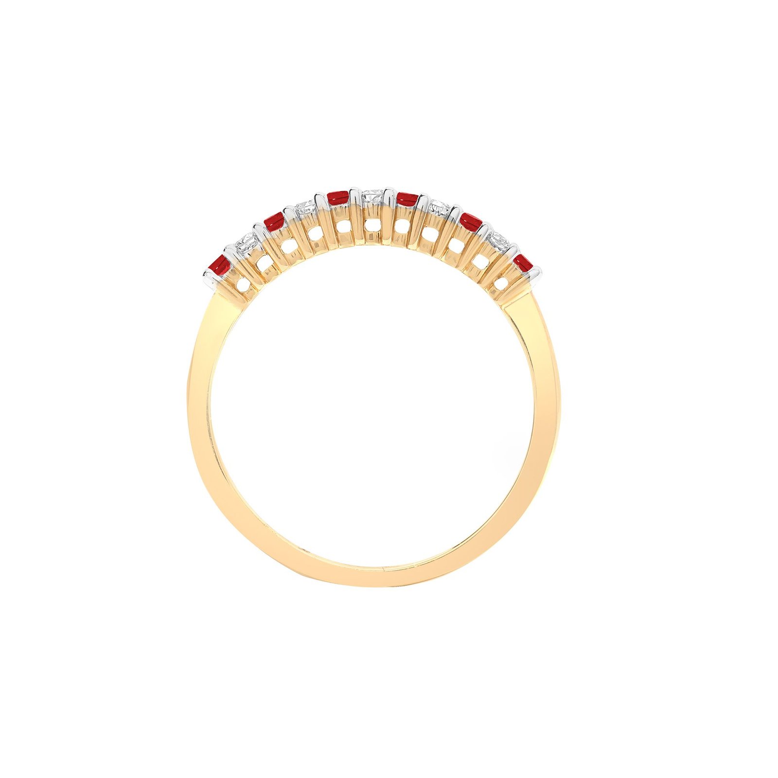 9ct Yellow Gold Natural Diamond 10pts & Ruby 15pts Half Eternity Ring