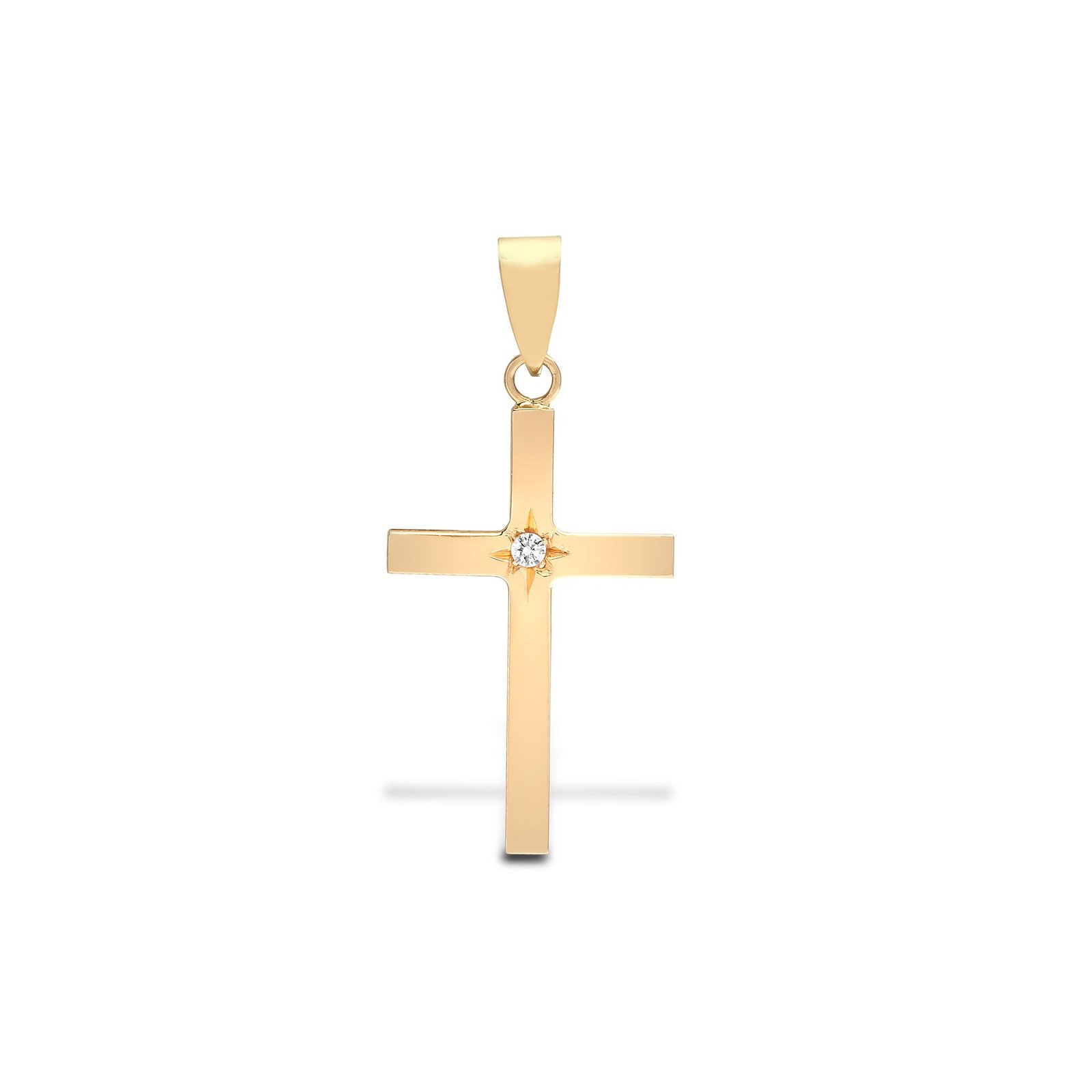 9ct yellow gold 3pt Natural Diamond cross. (Height includes bale/loop)
