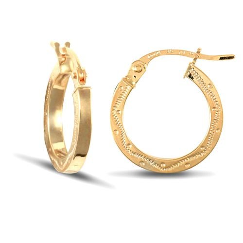 9ct yellow gold square-tube creole Hoop Earrings with a engraved wavy design.