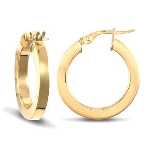 9ct Yellow Plain Square Tube Hoop Earrings