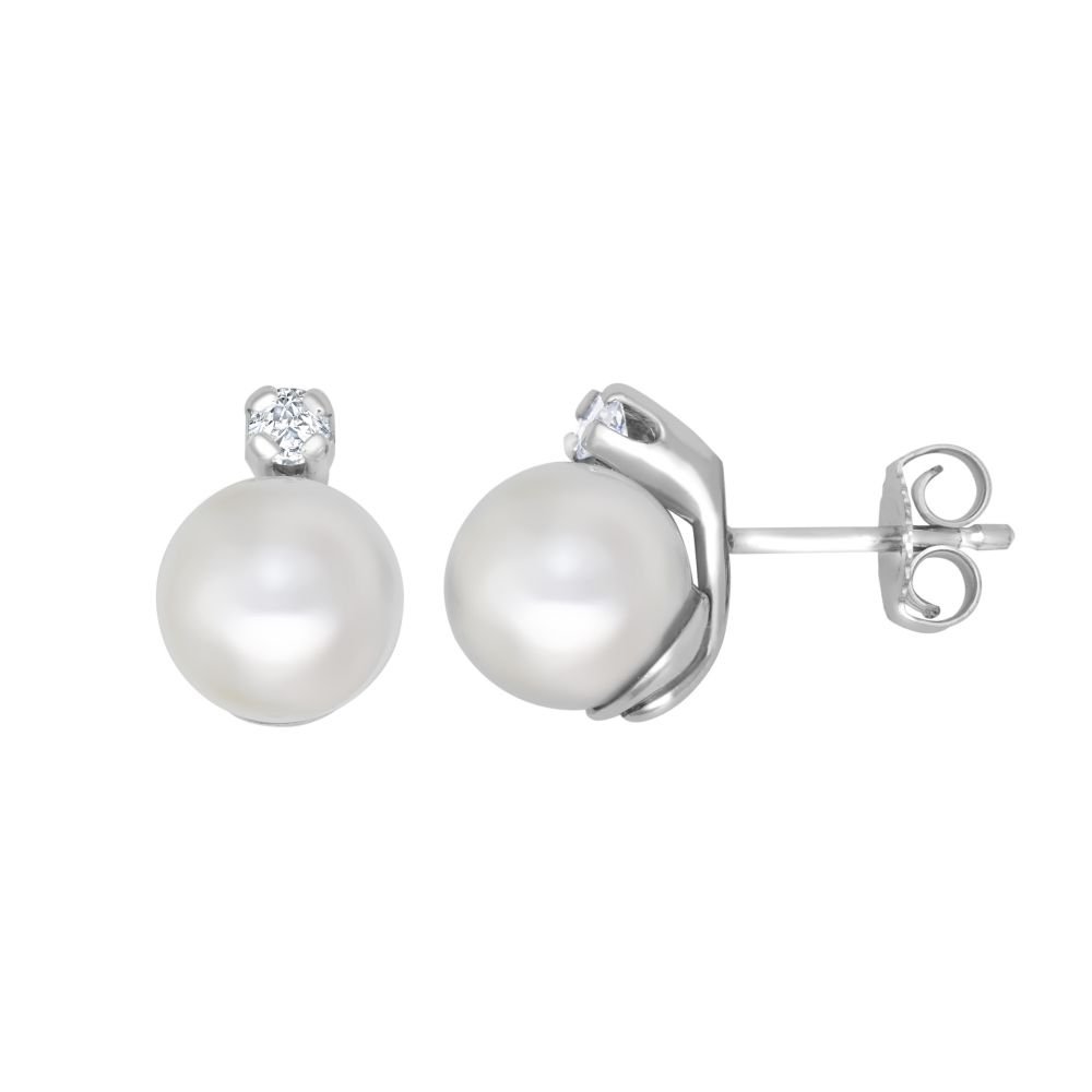 9ct White Dia-10pts 7.0-7.5mm Cultured Pearl Stud Earrings