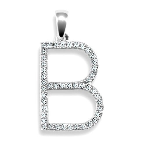 9ct white gold elegant Natural Diamond set capital block style initial pendant -initial B (Height includes bale/loop).