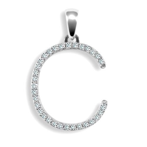 9ct white gold elegant Natural Diamond set capital block style initial pendant -initial C (Height includes bale/loop).