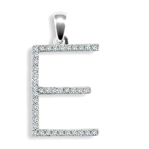 9ct white gold elegant Natural Diamond set capital block style initial pendant -initial E (Height includes bale/loop).