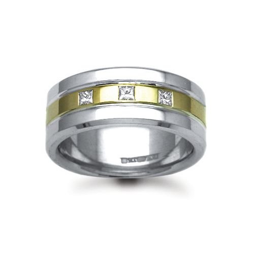 9W057-7 | 9ct Gold 2 Colour Natural Diamond Rubover set Wedding Ring
