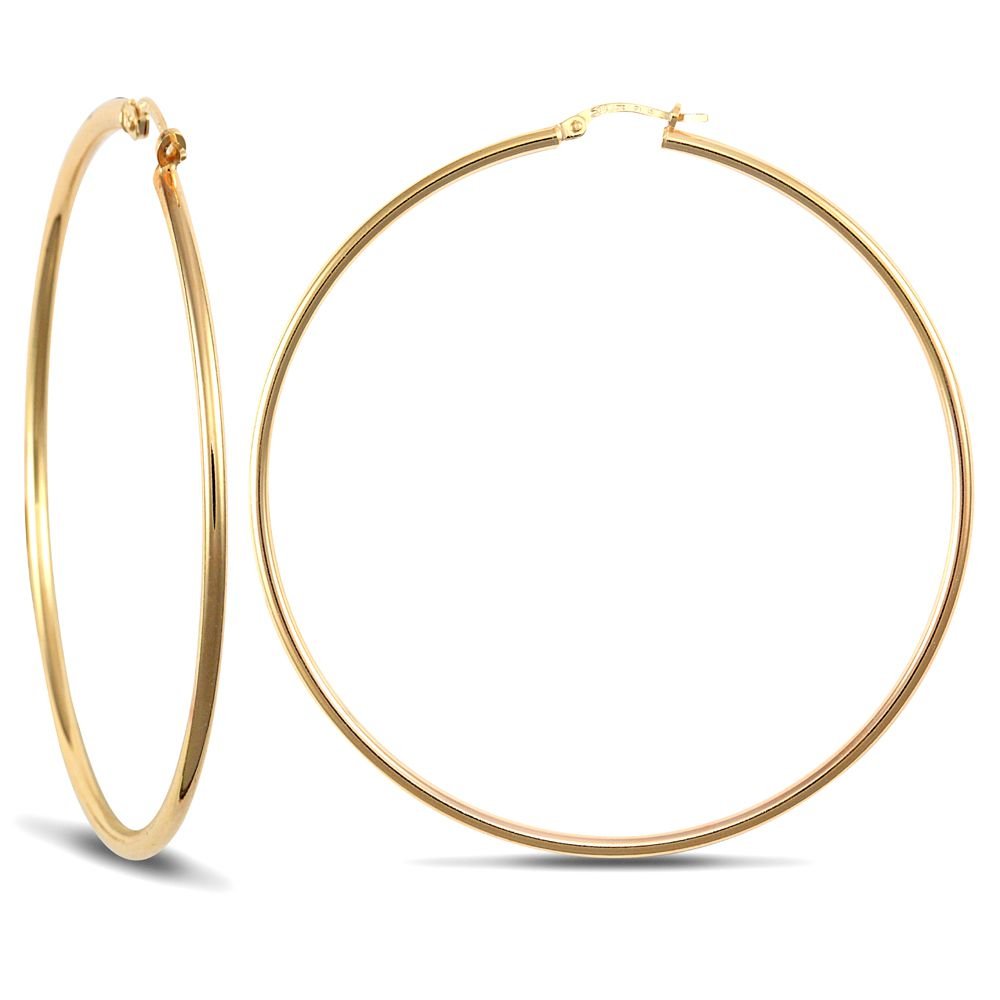 JN Jewellery 925 Sterling Silver Gold Plated 2mm polished creole Hoop Earrings