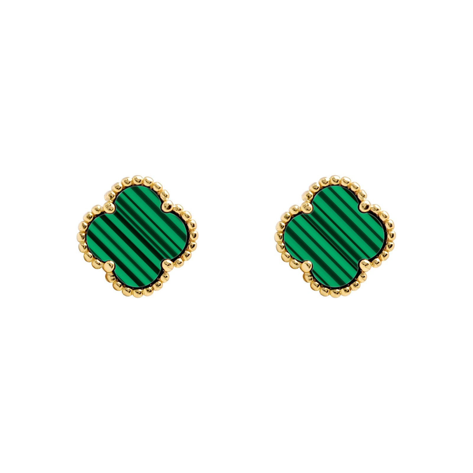 925 Silver 14ct gold Plated 5 Clover Stud Earrings Malachite Green