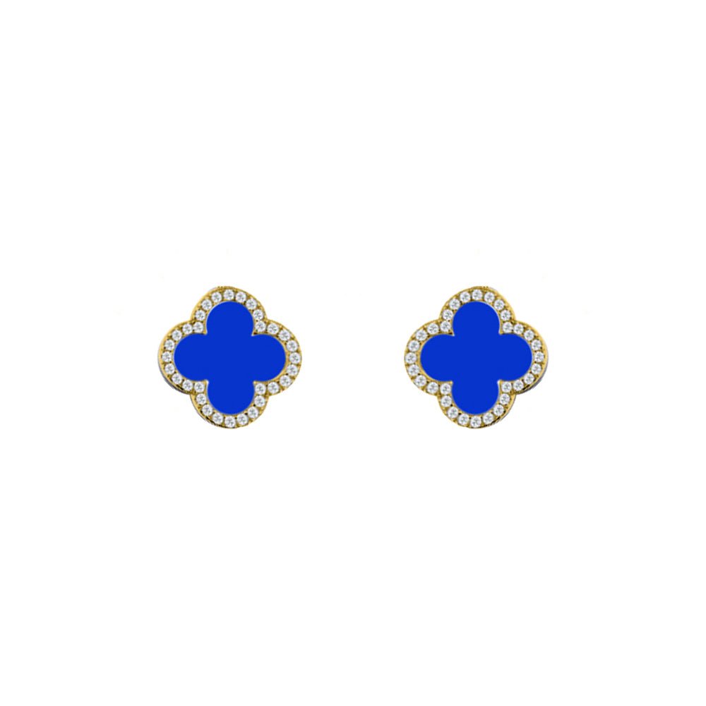 925 Silver 14ct gold Plated CZ Set 5 Clover Stud Earrings Blue Agate Colour