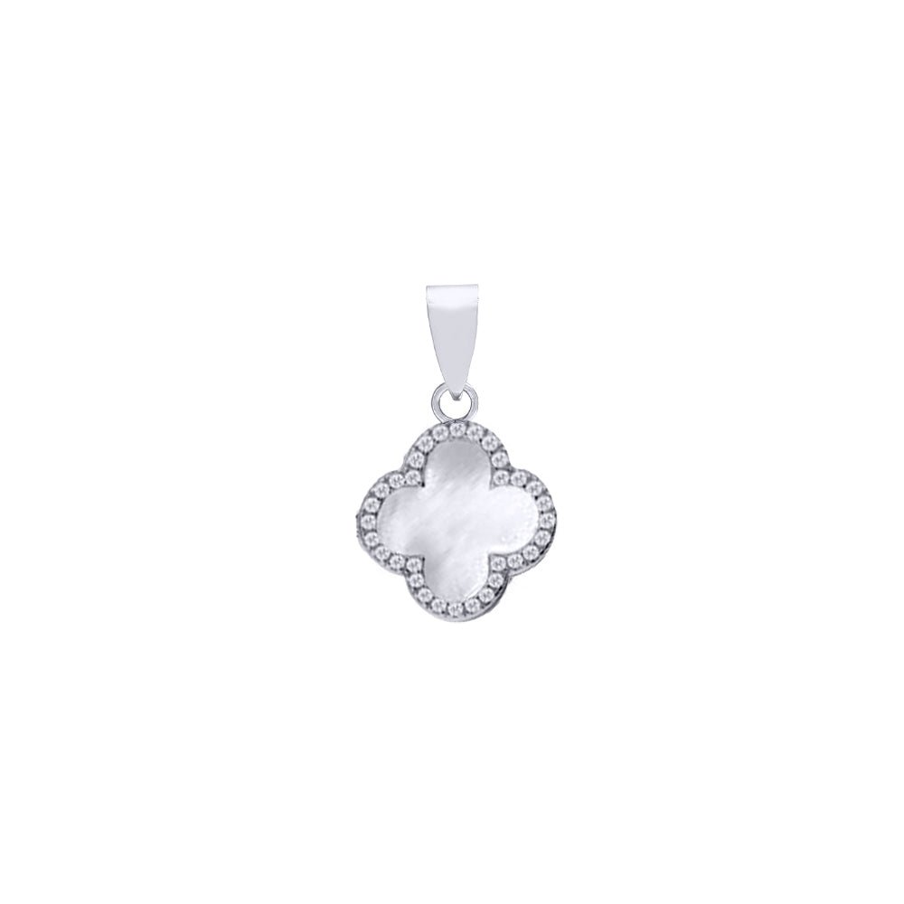 925 Silver Rhodium CZ Set Single Clover Pendant MOP White Colour