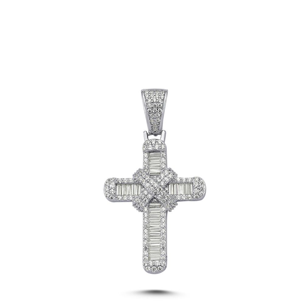 925 Silver CZ Brilliant and Baguette Cut Cross
