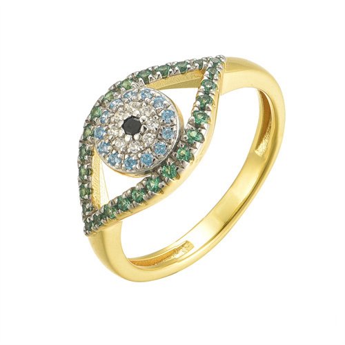 925 Siver 14ct Gold Plated CZ Set Evil Eye Ring