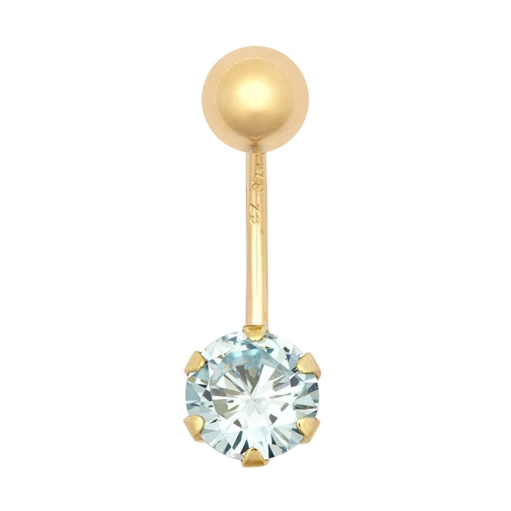 9ct yellow gold Light Blue cubic zirconia belly bar.