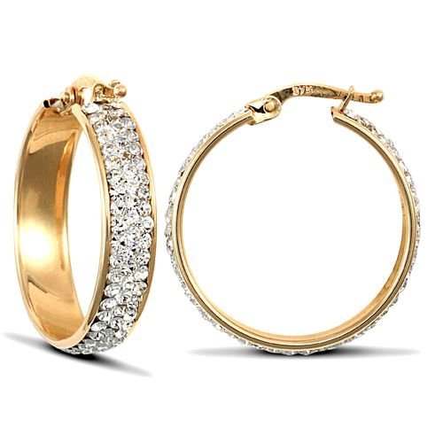 9ct yellow gold huggie Hoop Earrings pave-set with 3 rows of brilliant cut cubic zirconia stones.