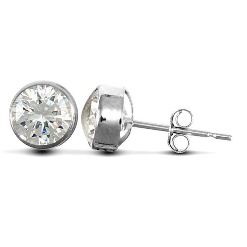 9ct white gold round Stud Earrings rub-over set with a solitaire cubic zirconia stone.