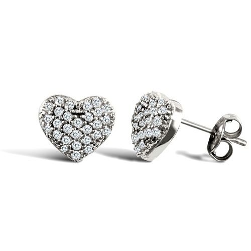 JES329 | 9ct white gold domed heart stud earrings with cubic zirconia’s