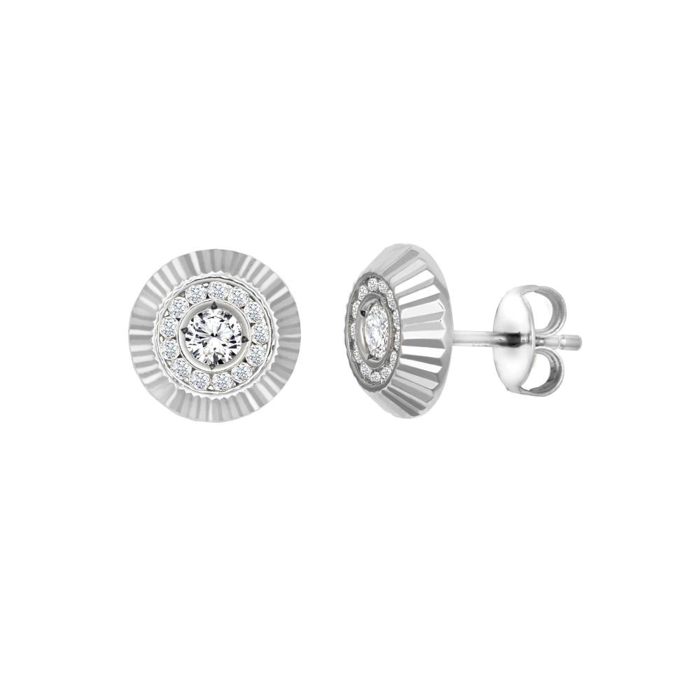 JN Jewellery 9ct White Gold 10mm CZ Bezel Stud Earrings