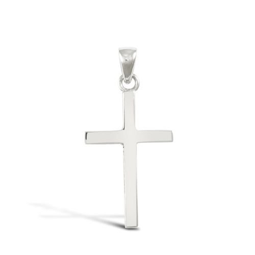 solid 18ct White gold hand finished light weight cross pendant. (Height includes bale/loop)
