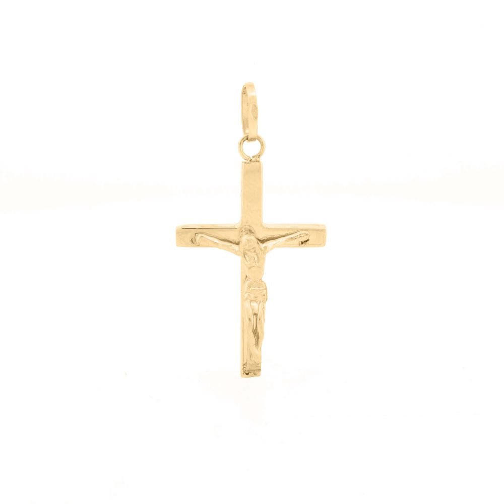 9ct Yellow Gold Square Tube Hollow Crucifix Pendant. (Height includes bale/loop)