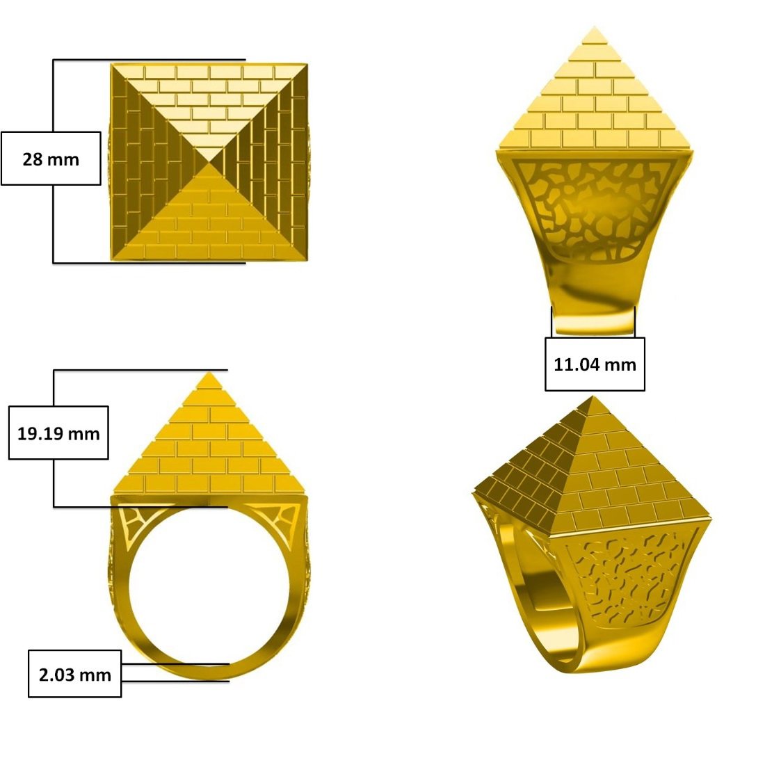 JN Jewellery 9ct Yellow Gold 1.5 Ounce Pyramid Ring