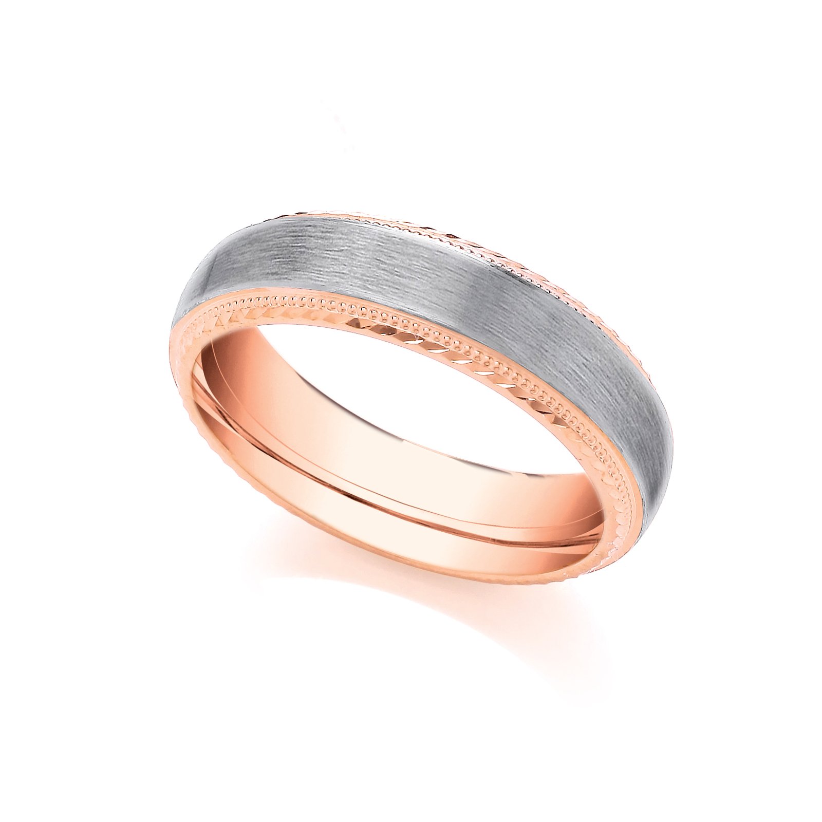 JN Jewellery 2 Colour 18ct Rose and White Fancy 4mm Wedding Ring. Each Bespoke jewellery item is unique and made to order, and therefore will be despatched within 4-6 weeks. Please note that bespoke, personalised and engraved items cannot be returned.