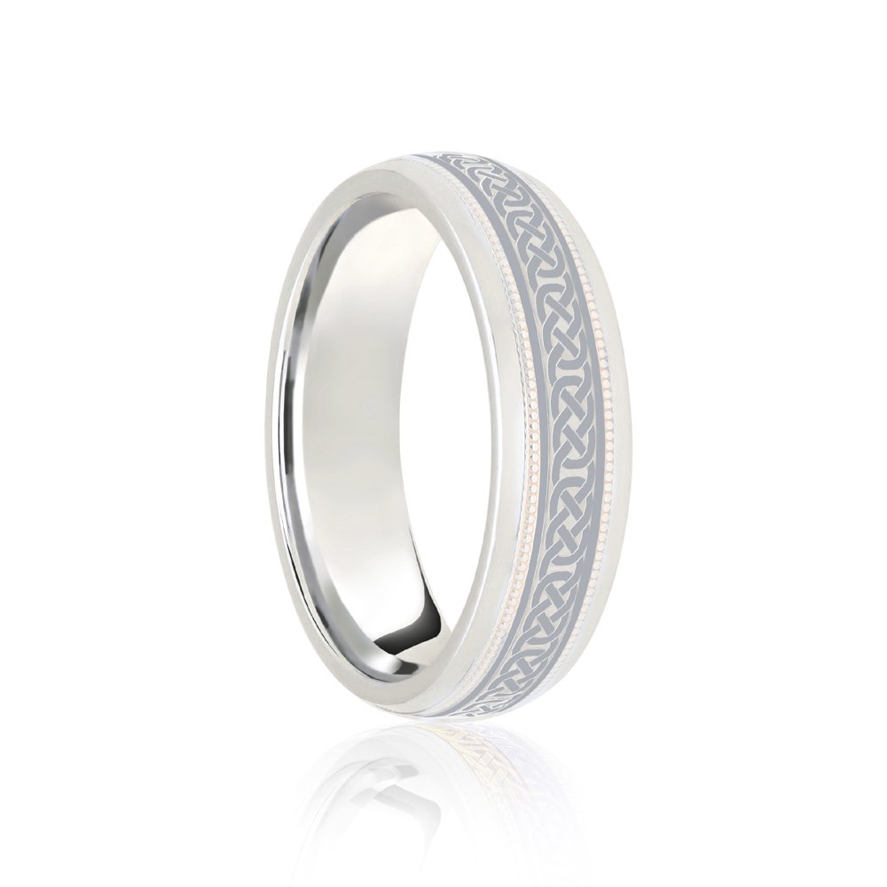 JWR185-18-6 | 18ct Rose & White Court 6mm Celtic Laser Engraved Wedding Band