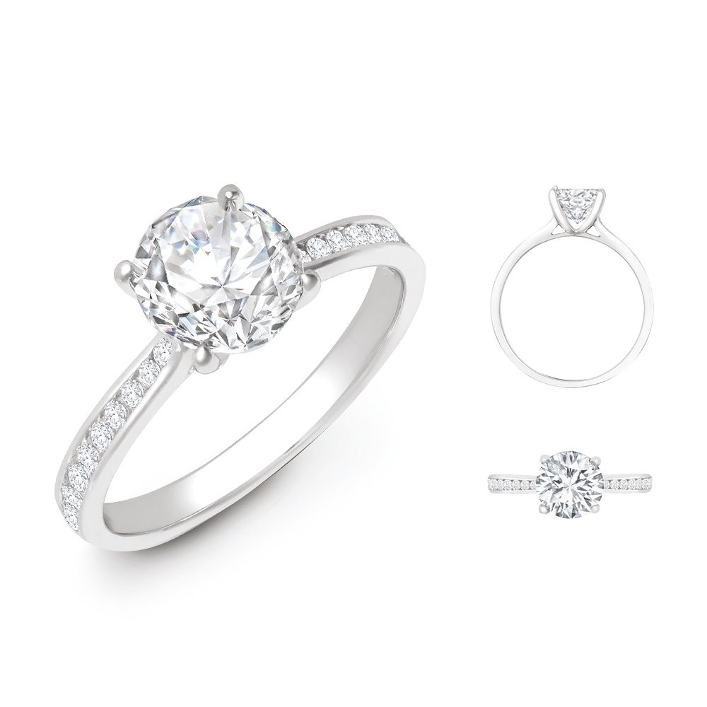 Lab 18ct White Gold 0.13ct Diamond Channel-set Wed-fit Ring Mount + 0.50ct Diamond