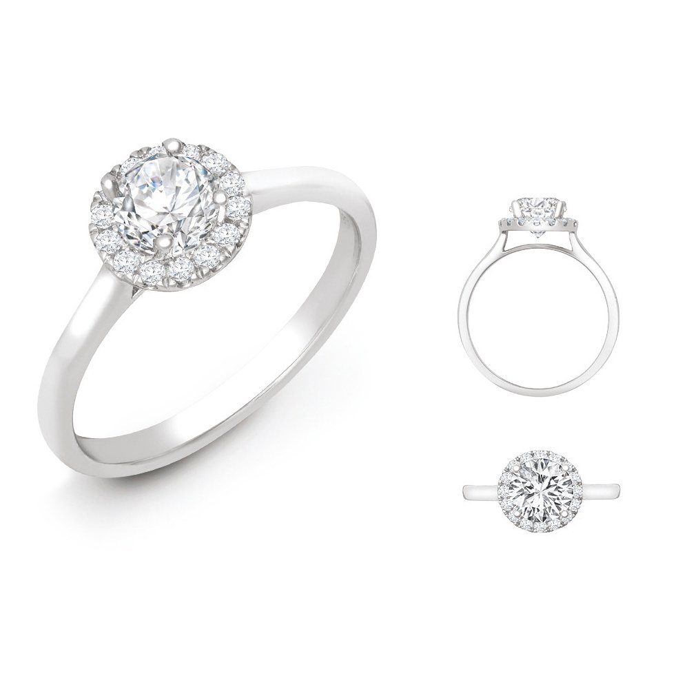 Lab 18ct White Gold 0.11ct Diamond Micro-set Halo Wed-fit Ring Mount + 0.50ct Diamond