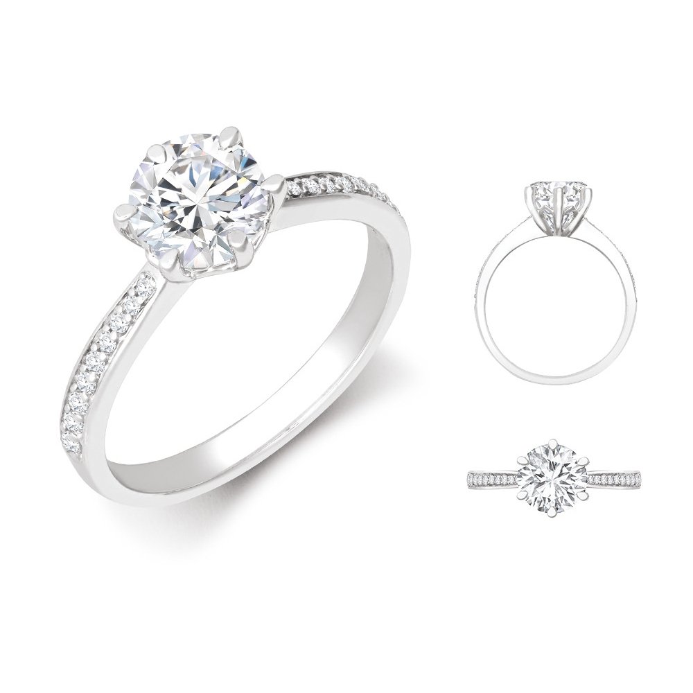 Lab 18ct White Gold 0.10ct Diamond Pave set 6-claw Ring Mount + 0.50ct Diamond