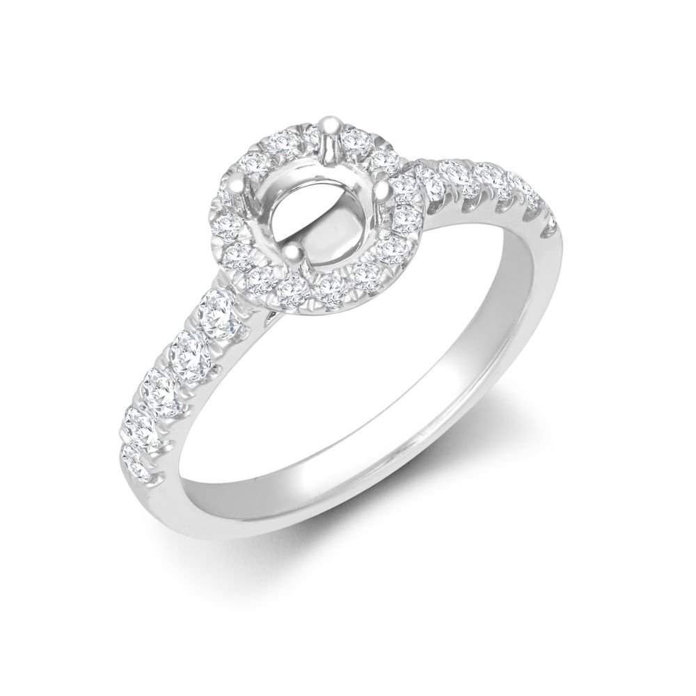 950 Platinum Gold 0.54ct Natural Diamond Micro-set Halo and Shoulders Wed-fit Ring Mount + 0.70ct Diamond