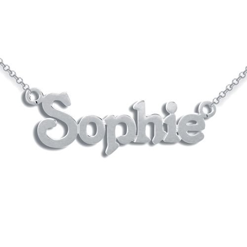 925 Sterling Silver personalised nameplate in a simple style capital and lowercase letters. Price per name. Please note that dimensions and weight will vary per order. Each bespoke jewellery item is unique and made to order, and therefore will be despatched within 7 – 10 days. Please note that bespoke, personalised and engraved items cannot be returned. This nameplate comes with a chain.
