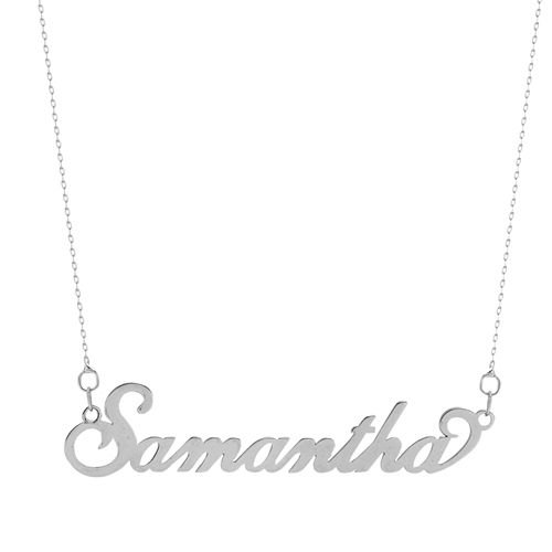 925 Silver personalised nameplate in italic capital and lowercase style writing. Price per name. Please note that dimensions and weight will vary per order. Each bespoke jewellery item is unique and made to order, and therefore will be despatched within 7 – 10 days. Please note that bespoke, personalised and engraved items cannot be returned. This nameplate comes with a chain.