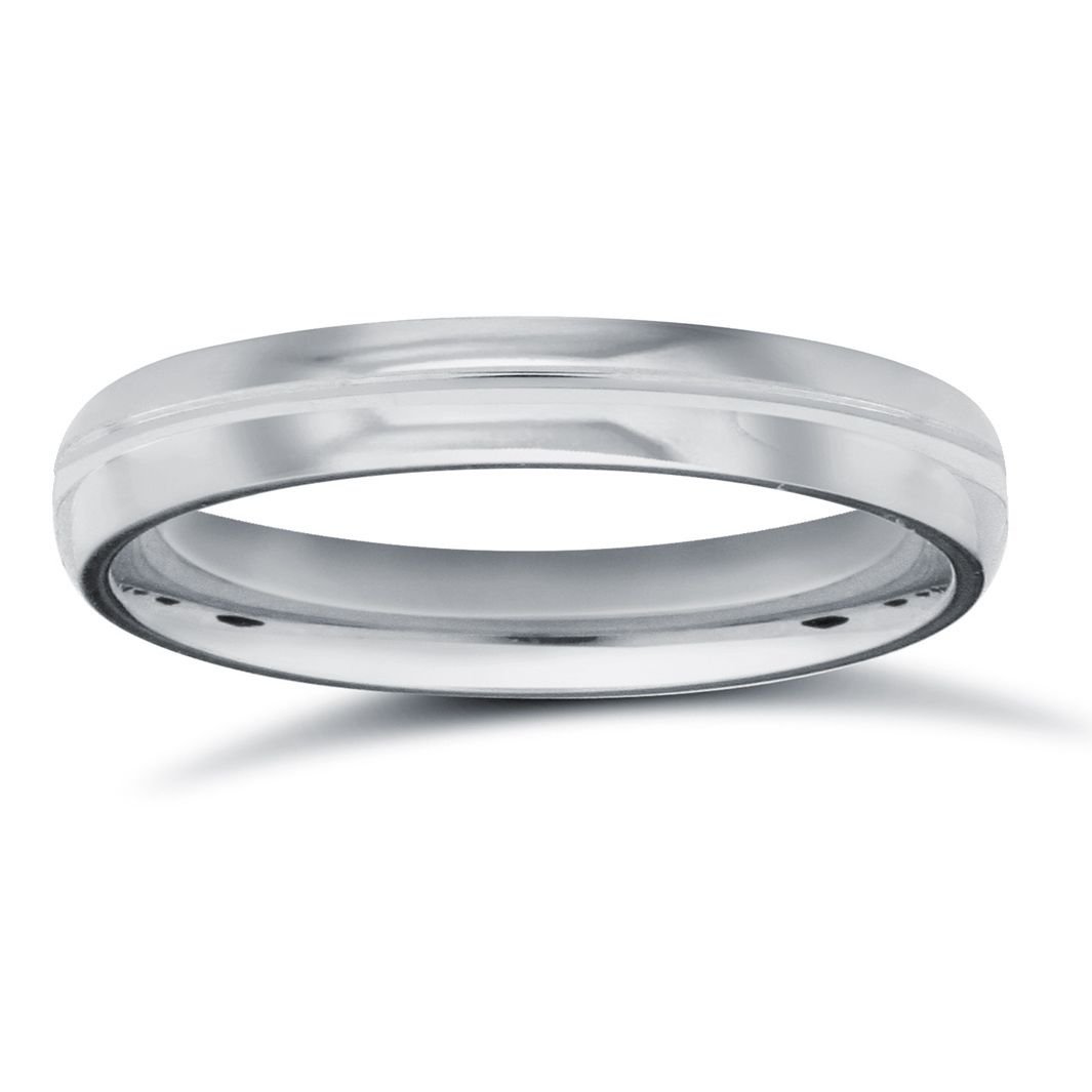 9ct White Gold Standard Weight Court Profile Centre Groove Wedding Ring