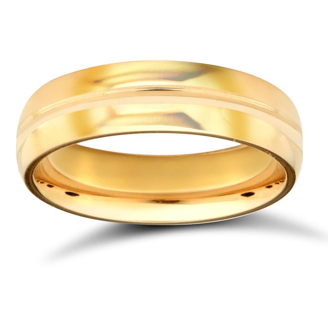 18ct Yellow Gold Standard Weight D-Shape Profile Centre Groove Wedding Ring