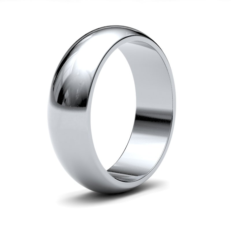 Bespoke hand-made 9ct White Gold 6mm standard weight D-Shape wedding / commitment ring. Features a brilliant hand-polished mirror-like finish. Each Bespoke jewellery item is unique and made to order, and therefore will be despatched within 2 weeks. Please note that bespoke, personalised and engraved items cannot be returned.